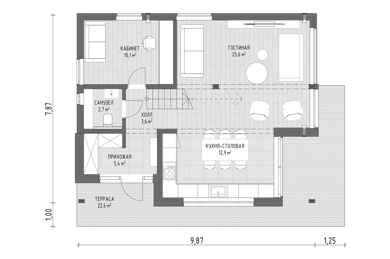 Дом воплощает в себе основательность и надёжность, но при этом он также нежен и воздушен. Его внешний вид гармонично вписывается в ландшафт и словно следует за вашими желаниями.