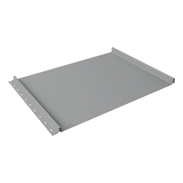 - Скрытый крепеж: Панели крепятся к обрешетке при помощи кляммеров, которые полностью закрываются фальцем. Это обеспечивает защиту металла от коррозии в местах крепления.