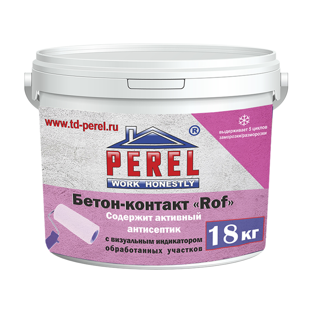 Perel Rof - специализированная адгезионная водно-дисперсионная грунтовка на основе дисперсии мирового лидера в химической отрасли применяется для подготовки невпитывающих оснований под структурные, фактурные и декоративные штукатурки.