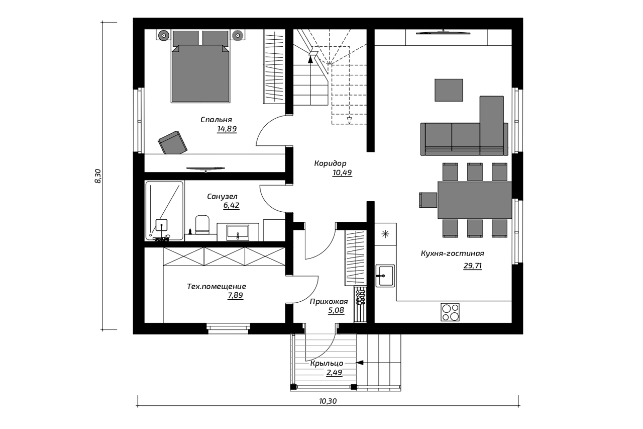 У двухэтажных домов площадь застройки примерно в два раза меньше общей площади. Этот коттедж идеально подходит для совместного проживания трёх поколений одной семьи.