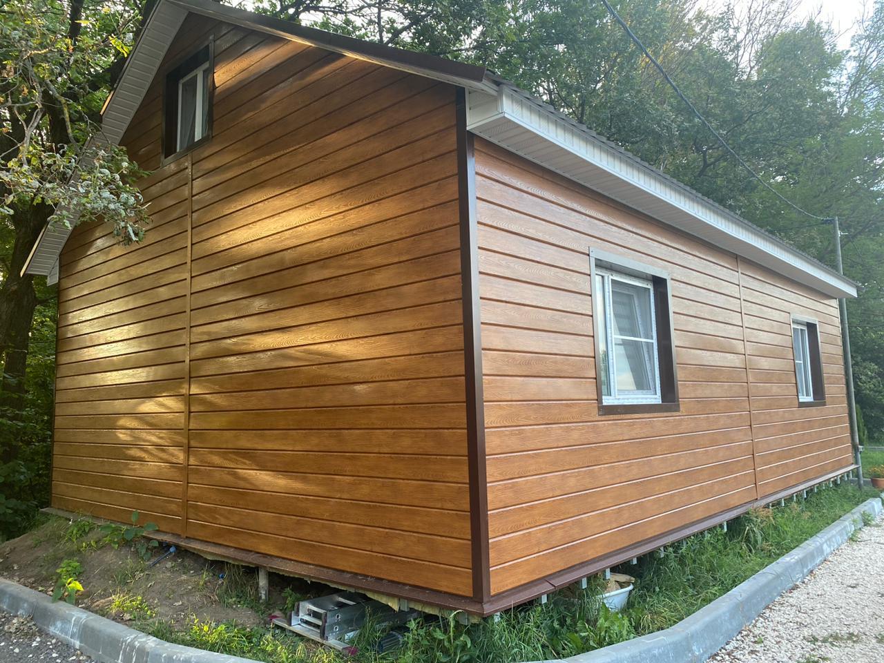 Монтаж фасада - Металлосайдинг GL Экобрус Golden Wood